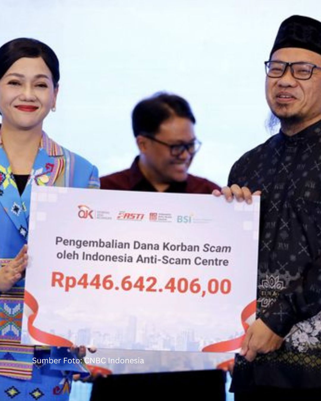 Otoritas Jasa Keuangan (OJK) berhasil mengembalikan dana senilai Rp161 miliar kepada 1.070 korban penipuan keuangan atau scam melalui Indonesia Anti-Scam Centre (IASC). Penyerahan simbolis dilakukan pada 21 Januari 2026 di Gedung AA Maramis, Jakarta, melibatkan sinergi OJK, kementerian, lembaga, dan perbankan.